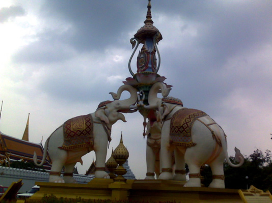 This monument (a symbol to one of the Royal families) is located near the front of the Emerald Buddha Temple. |