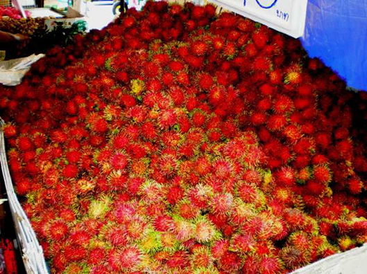 Mostly all of the fruit in Thailand is local and delicious (especially good were pineapples and coconuts). But, my favorite was the Rambutan shown above. It has a sweet, white center. |