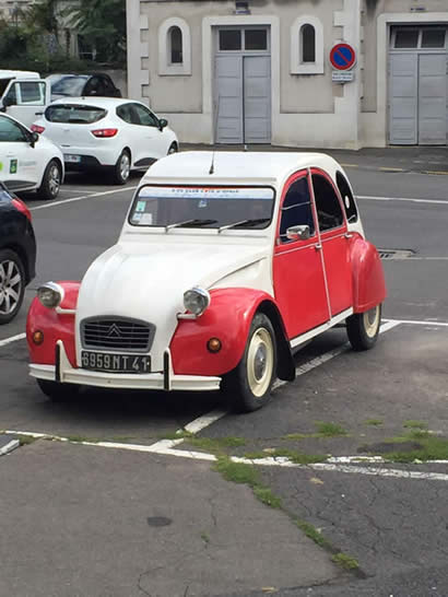An old car parked at a local supermarket near La Chancellerie (3 blocks away). |