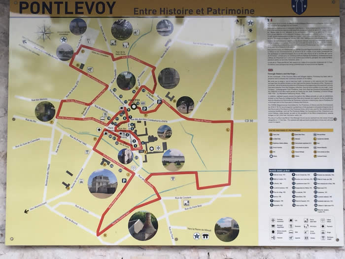 A history and outline of the Village of Pontlvoy posted near the village center. |