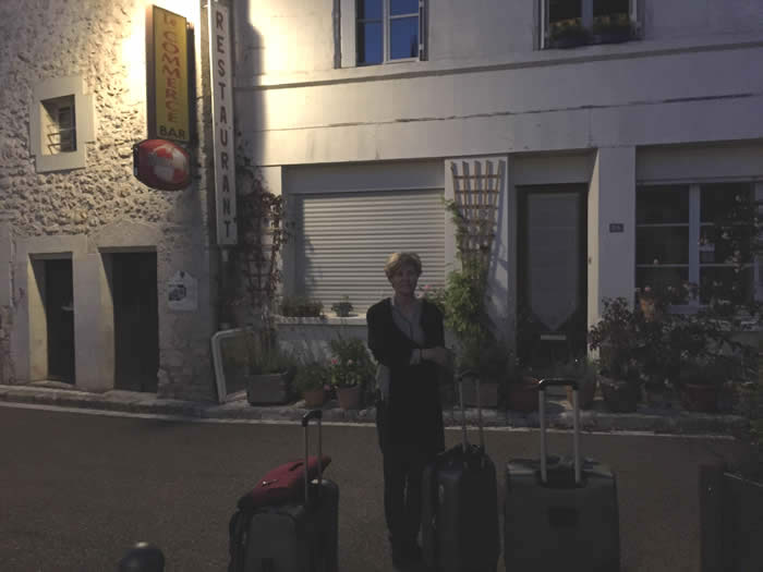 My wife Donna waiting for a cab to take us to Montrichard, the nearest train station about 15 minutes away. |