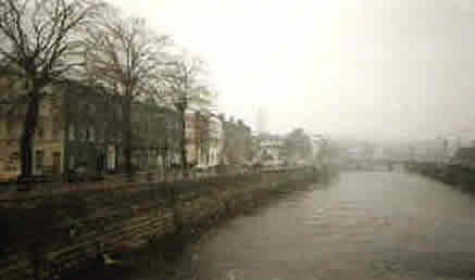 ![]() A view down the river during snowfall. |