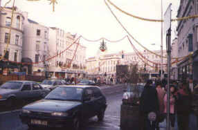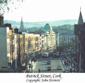 The main street in town which contains many of the department stores, the movie theatre, and the English Market